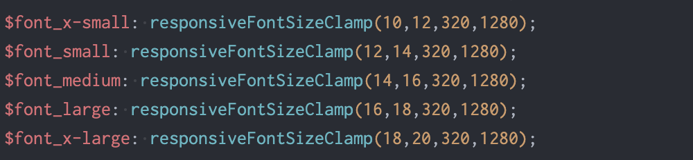 ”responsiveFontSizeClamp(最小フォントサイズ,最大フォントサイズ,最小ウィンドウサイズ,最大ウィンドウサイズ)”