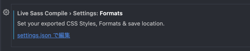 ③ “Live Sass Compile › Settings: Formats” の 「settings.jsonで編集」をクリック