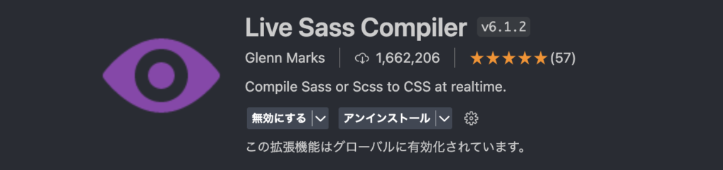 ①. VSCodeの”拡張機能” から 「Live Sass Compiler」をインストールして有効化